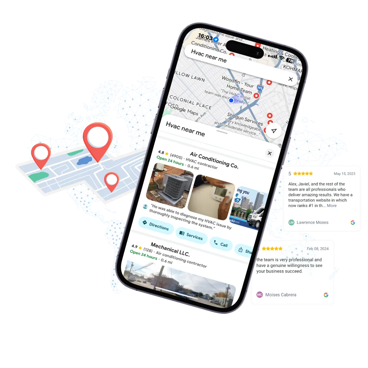 Every service address you visit becomes a Map Pin Placement, sending powerful local signals to Google that expand your rankings into new service areas around your profile.