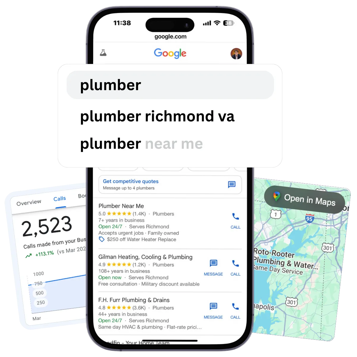 ✅ We’ll install Map Check-Ins and our Local Engagement Booster to help you rank your plumbing business at the top of Google Maps for hundreds of keywords.